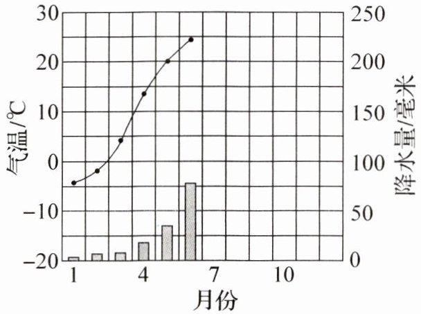 (1)绘图略 (2)26.1 7 -4.7 1 30.8 (3)7、8月 夏 (4)高温多雨 寒冷干燥 (5)温带季风
