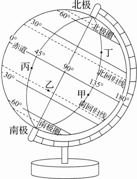 地球仪是地球的模型。下图为地球仪示意图。读图,完成6~8题。