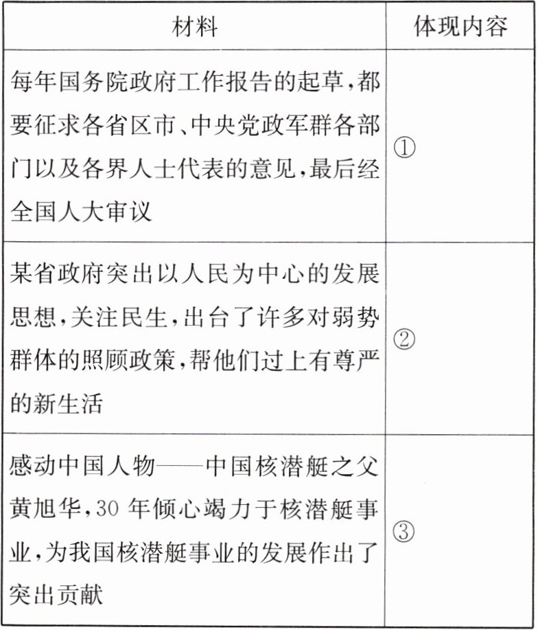 8. 以下材料分别体现了社会主义核心价值观的哪些基本内容?请完成表格。