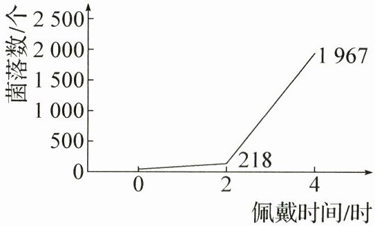 5. 生物兴趣小组的同学利用微生物培养技术,检测了佩戴不同时间后,口罩内侧细菌的数量,结果如右图所示。下列叙述错误的是( )。