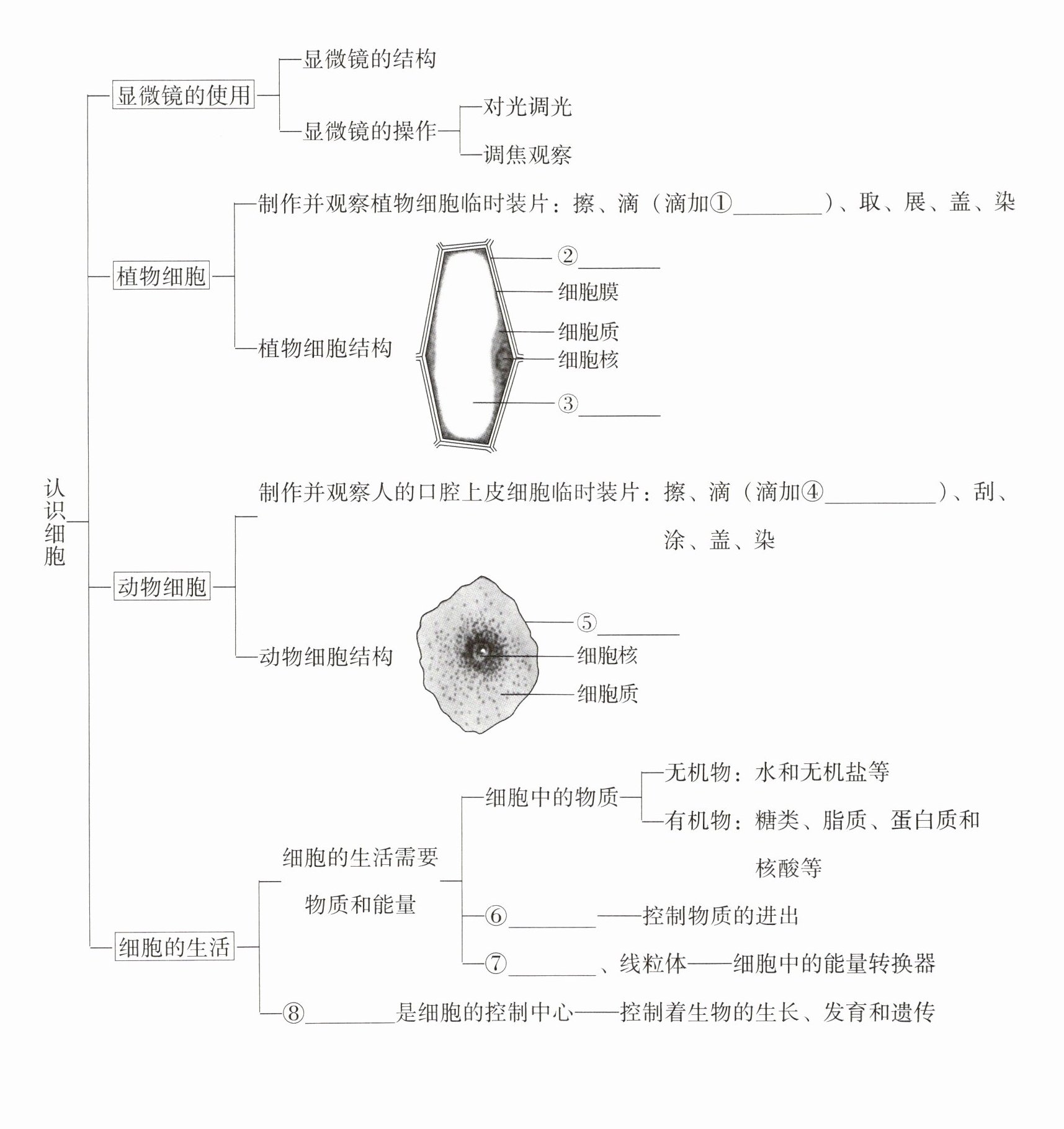 ①清水 ②细胞壁 ③液泡 ④生理盐水 ⑤细胞膜 ⑥细胞膜 ⑦叶绿体 ⑧细胞核