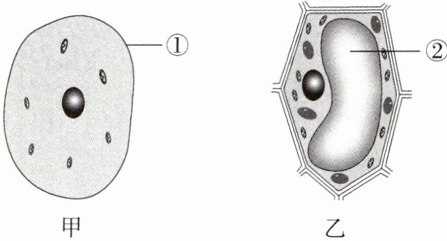 B 解析:甲表示动物细胞,取自鳜鱼,乙表示植物细胞,取自桃花。细胞核含有遗传物质,是细胞生命活动的控制中心。①是细胞膜,②是液泡。植物细胞和动物细胞都有细胞膜。液泡一般存在于植物细胞中,动物细胞中不存在。