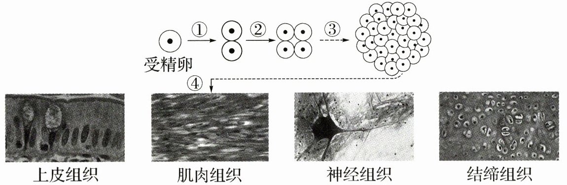 14. 下图为人体组织形成过程示意图,请分析并回答问题。