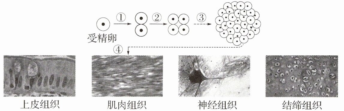 6. (湖南湘潭中考)你从一个受精卵发育成长为一个青少年,让我们看到了生命的奇妙变化。下图所示为人体组织形成过程,请分析并回答问题。