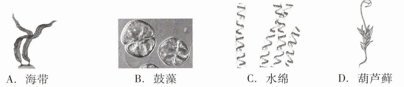 1. D 解析:藻类没有根、茎、叶的分化,主要生活在水中,能够独立生活,可以进行光合作用释放氧气。葫芦藓属于苔藓植物。