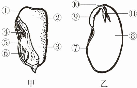 ,在图乙的种子萌发时,提供营养物质的结构是[ ]⑧ 子叶