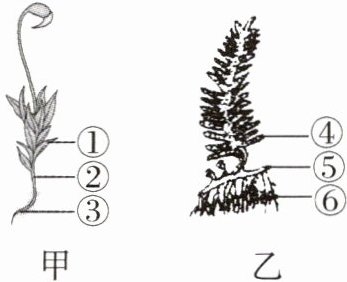 6. (河南南阳阶段练习改编)图甲、图乙分别代表葫芦藓和蕨类植物。请分析图示,回答下列问题。