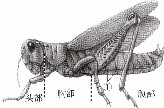 9. 取两只生命力旺盛,大小相同的蝗虫,参照下图观察①所示的气门,找一找这些气门分布在蝗虫身体的哪几节,猜一猜它们的作用,并完善以下实验,预期实验结果。