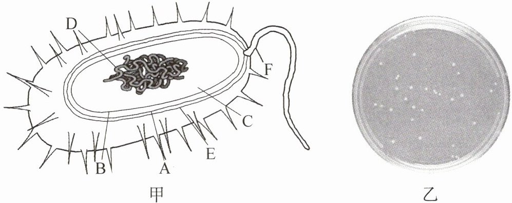 7. 图甲是某种细菌的结构示意图,图乙表示该细菌在培养基上的生长情况,请据图回答下列问题。