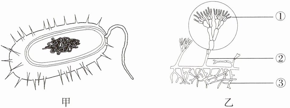 7. 下图甲、乙分别是细菌和青霉的结构示意图,请据图回答下列问题。