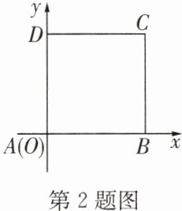 2. 如图,以正方形 $ ABCD $ 的顶点 $ A $ 为原点,$ AB $ 所在的直线为 $ x $ 轴建立平面直角坐标系,点 $ B $ 的坐标为 $ (2,0) $,那么以正方形的顶点 $ C $ 为原点,$ CD $ 所在的直线为 $ x $ 轴重新建立平面直角坐标系,此时点 $ B $ 的坐标为(
