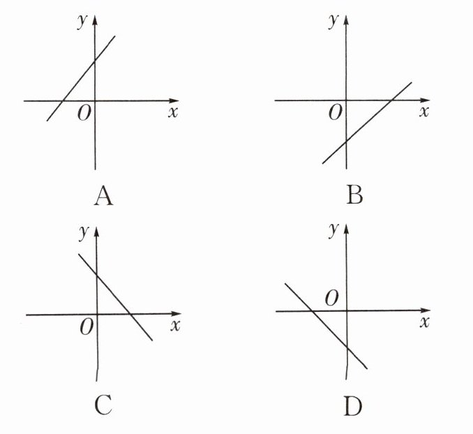 性 质:在一次函数 $ y = kx + b $ 中,当 $ k > 0 $ 时,$ y $ 的值随着 $ x $ 值的增大而增大;当 $ k < 0 $ 时,$ y $ 的值随着 $ x $ 值的增大而减小.