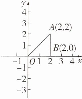 4. 如图,点 $ A $ 的坐标为 $ (2,2) $,点 $ B $ 的坐标为 $ (2,0) $。