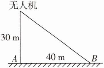 1. 如图,已知地面上 A,B 在一条直线上,$AB = 40m$,当无人机从 A 处竖直上升 30 m 时,无人机到 B 处的距离是 (