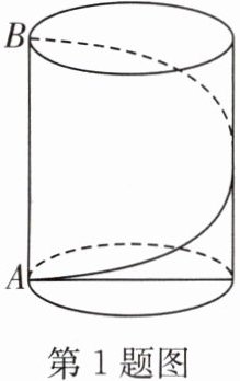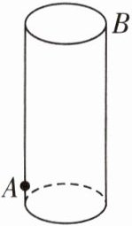 1. 如图,圆柱的高为5m,底面圆的周长为12m。将一条彩带从底面A点开始绕圆柱一圈后,挂在点A的正上方点B处,则彩带最短需要(