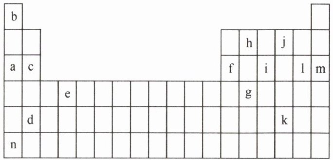 20. 下表是元素周期表的一部分。表中所列的字母分别代表某一化学元素。