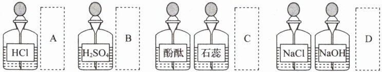 15. 实验室中的药品常按物质的性质、类别等有规律地摆放。现有部分药品按某种规律的摆放在实验桌上,如下图。做“硫酸的性质”的实验时,某同学取用$BaCl_2$溶液后,应把它放回的位置是 ( )