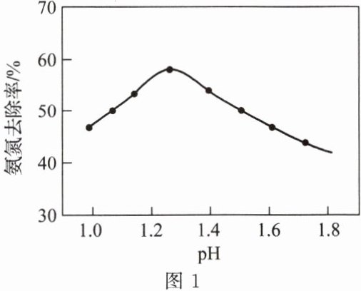 ②废水中氨氮去除率随pH的变化如图1所示,当1.3<pH<1.8时,氨氮去除率随pH升高而降低的原因是______。