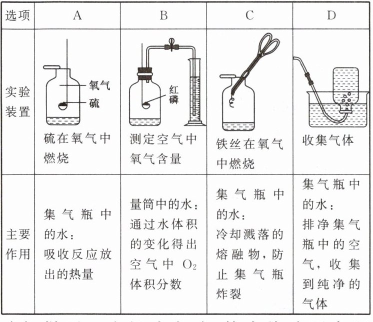 A 解析:硫在氧气中燃烧实验中集气瓶中的水主要作用是溶解反应产生的有毒气体产物二氧化硫,A项错误。