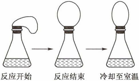 A 解析:不能验证质量守恒定律,因为气球受到浮力,该选项A说法正确;冷却至室温时,由于反应生成二氧化碳,导致瓶内压强增大,气体分子间空隙变小,也可能内外压强相等,瓶内气体分子间空隙不变,该选项B说法不正确;应生成了二氧化碳气体,该选项C说法不正确;冷却至室温时,气球缩小,说明反应过程中放热,该选项D说法不正确。