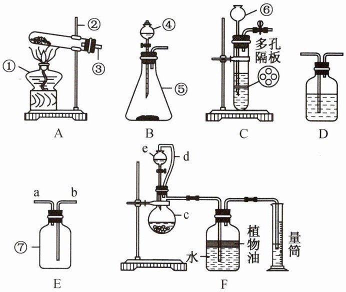 (1)写出标号仪器名称:① ______________② ______________③ ______________④ ______________⑤ ______________⑥ ______________⑦ ______________