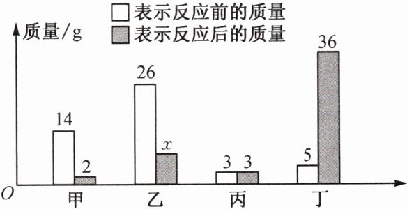 A 解析:由质量守恒知(14-2)+(26-x)=36-5,得x=7,D项正确;参加反应的甲、乙质量之比为(14-2):(26-7)=12:19,A项错误;由于反应中丙的质量没有变化,丙可能是催化剂,B项正确;丁是甲和乙化合形成,因此是化合物,C项正确。