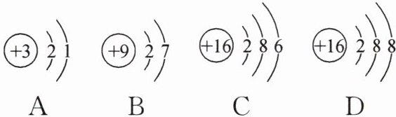 (3)下列微粒结构示意图中共表示 种元素,属于离子的是 (填字母)。