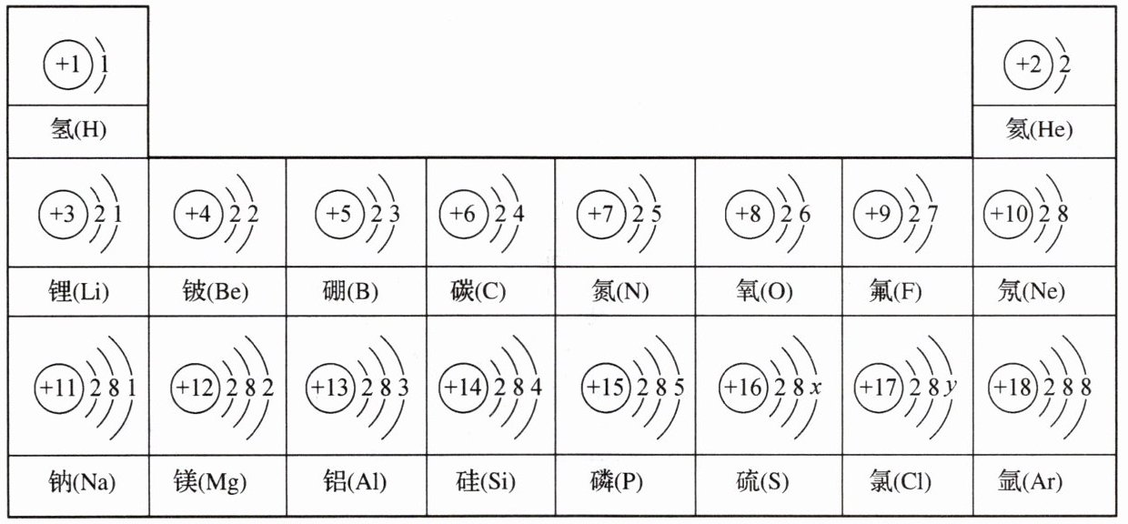 (3)同一行原子的电子层数相等;每一行最外层电子数从1逐渐增加到8(第一行由1到2)。