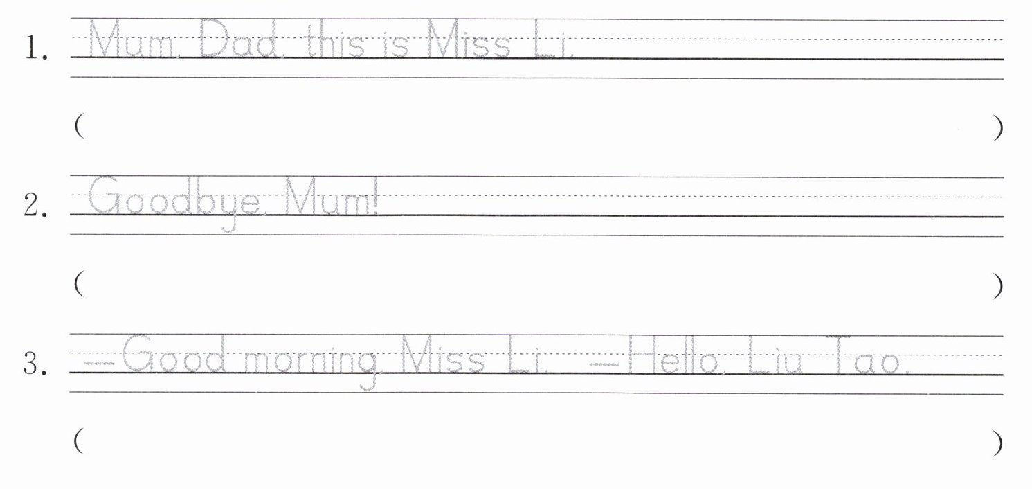1. — Goodbye, Dad! — Goodbye, Taotao! 2. This is Miss Li. 3. This is my mum, Yang Ling.
