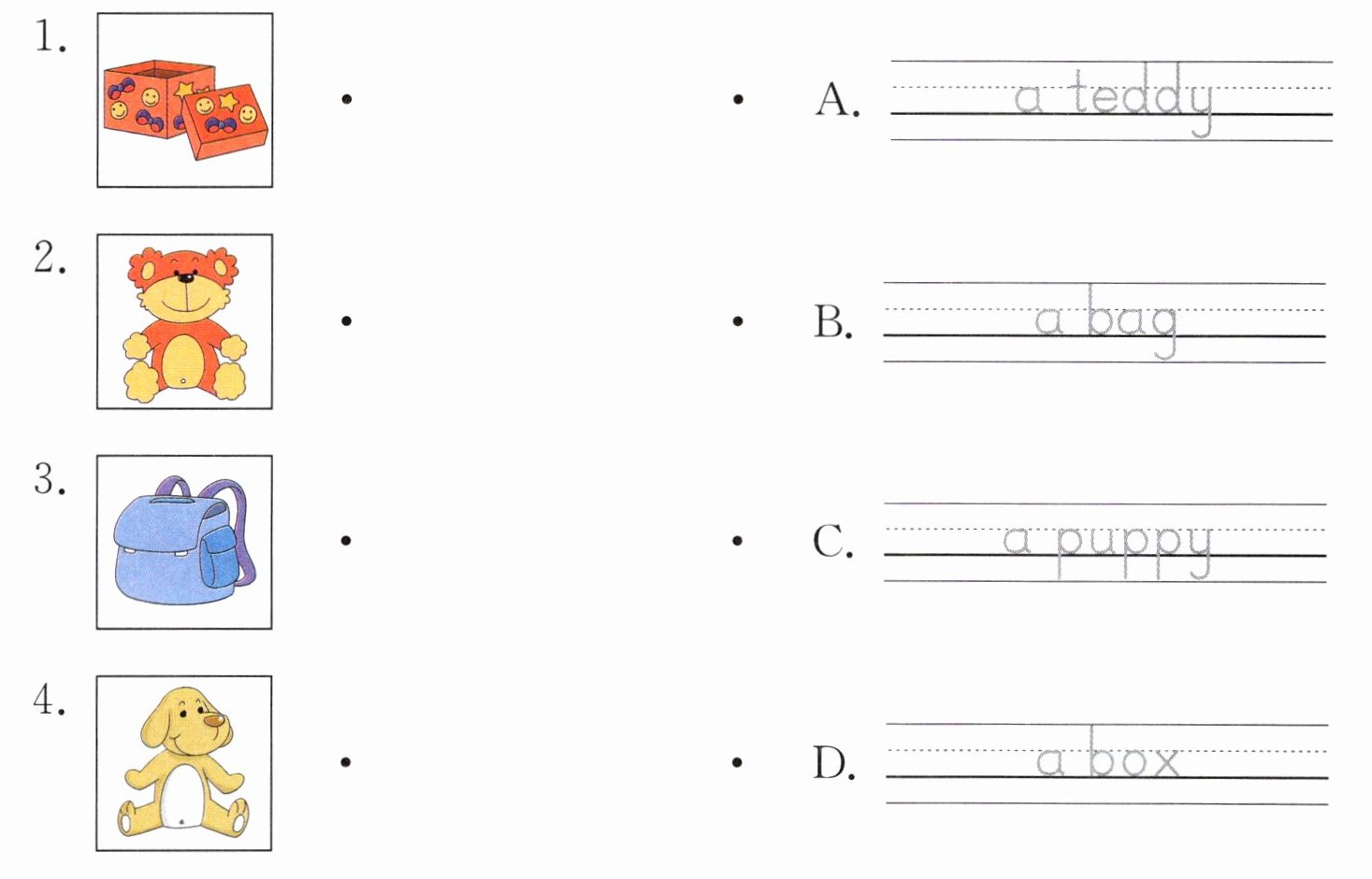 二、读一读,描一描,并将图片与对应的英文连线。