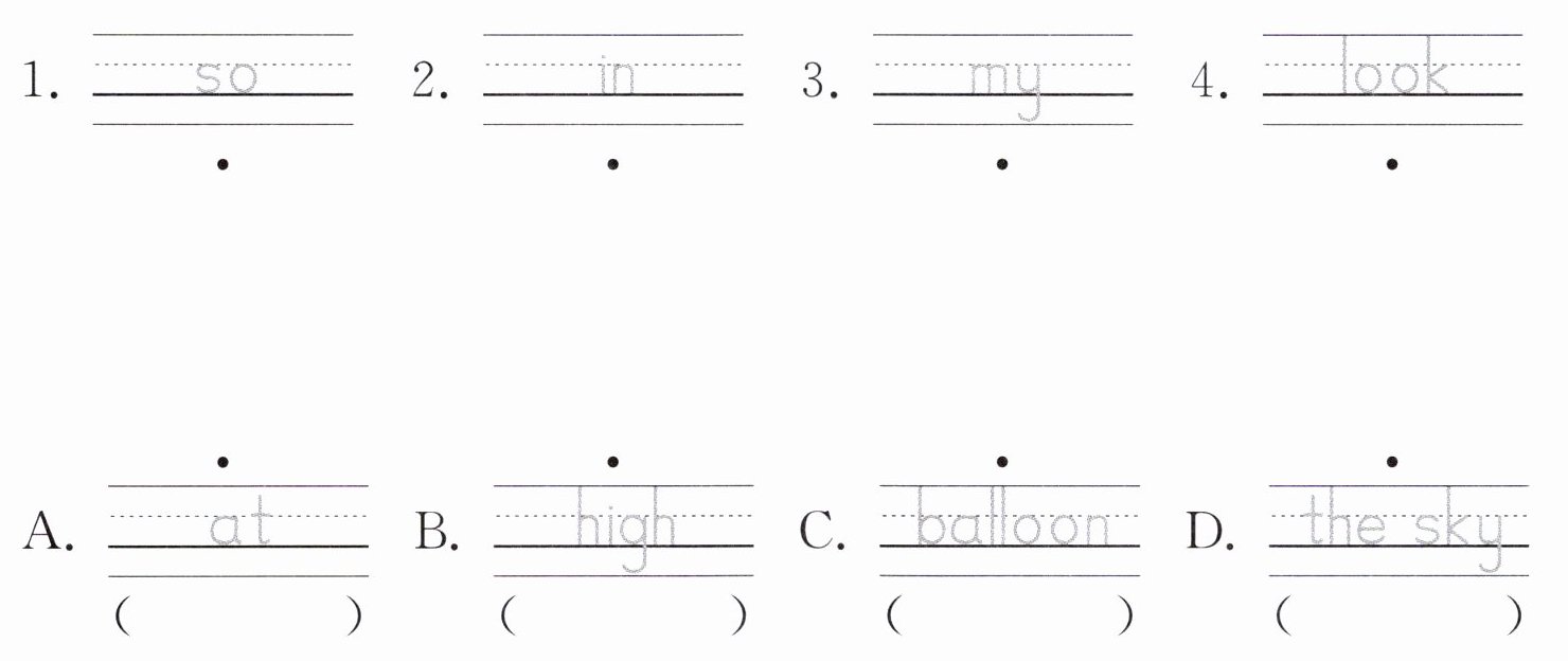 1-B 如此高 2-D 在天空中 3-C 我的气球 4-A 看