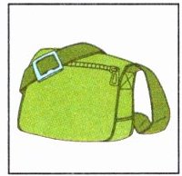 1. Look at my bag. It's green. 2. Look at my balloon. It's blue.