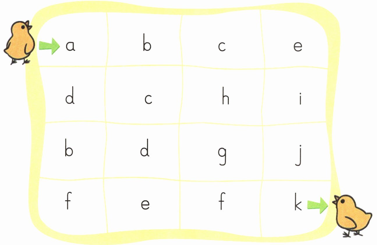 画一条线,按照顺序串联字母a—k,让小鸡找到他的好朋友。