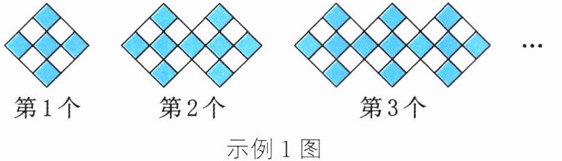 示例1(2024·连云港期中改编)如图所示为一组有规律的图案,它们是由边长相同的小正方形组成的,其中部分小正方形涂有蓝色,依此规律,第10个图案中有