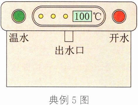 典例5(2023·南京)如图,某校的饮水机有温水、开水两个按钮,温水和开水共用一个出水口。温水的温度为$30^{\circ}C$,流速为$20mL/s$;开水的温度为$100^{\circ}C$,流速为$15mL/s$。某学生先接了一会儿温水,又接了一会儿开水,得到一杯$280mL温度为60^{\circ}C$的水(不计热损失),求该学生分别接温水和开水的时间。