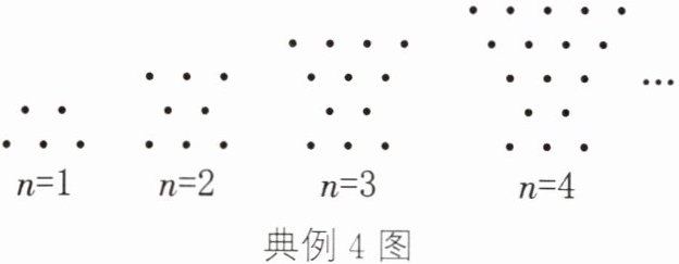 典例4(2023·邳州一模)用大小相同的圆点摆成如图所示的图案,按照这样的规律继续摆放,则第12个图案($n = 12$)中圆点的个数为
