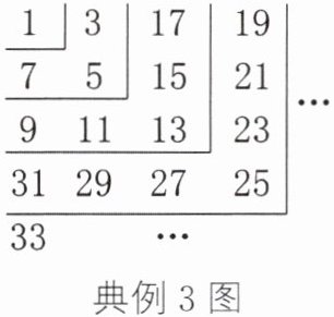 典例3(2022·苏州模拟)将从1开始的连续奇数按如图所示的规律排列,例如:位于第4行第3列的数是27,则位于第32行第13列的数是