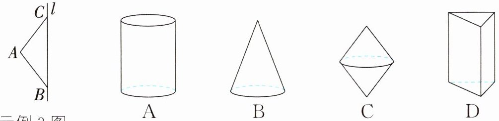 示例3 (2024·临潼一模)如图,三角形ABC绕直线l旋转一周得到的几何体为(
