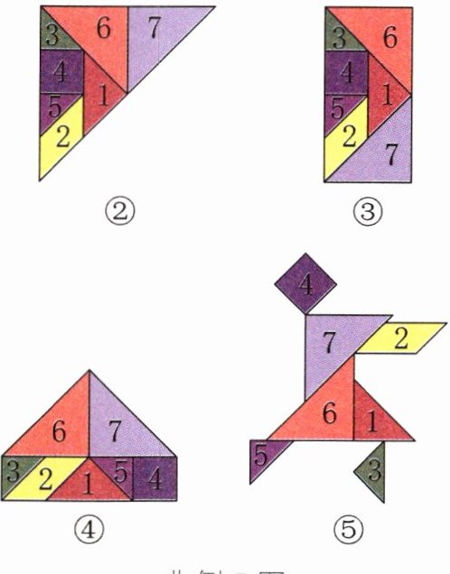 解七巧板拼图问题时,一般先熟悉七巧板的结构:五个等腰直角三角形,其中有两对能完全重合;一个正方形;一个平行四边形. 根据它的结构想象可能拼接的方式,然后借助自备的七巧板学具动手操作,直到拼出符合题目要求的图形为止.