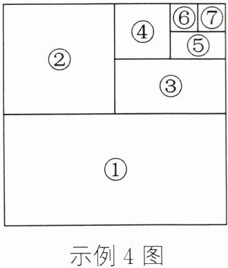 示例 4(2024·宣汉期末)如图,将一张边长为 1 的正方形纸片分割成 7 个部分,部分①的面积是边长为 1 的正方形纸片面积的一半,部分②的面积是部分①面积的一半,部分③的面积是部分②面积的一半,以此类推.