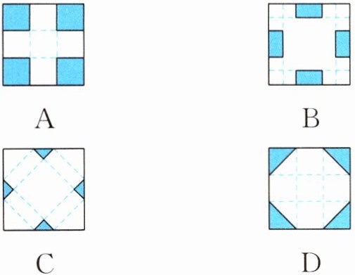 例 1 下列四张正方形硬纸片中,剪去涂色部分后沿虚线折叠,可以围成一个封闭的长方体包装盒的是(