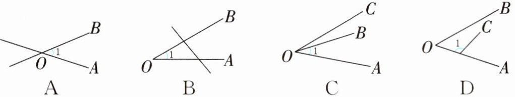 )解析:因为选项A的图中以O为顶点的角不止一个,所以不会出现∠O。所以选项A错误。因为选项B的图中的∠1,∠AOB,∠O表示同一个角,所以选项B正确。因为选项C的图中的∠1表示的是∠AOB,类似选项A的判断可知∠1表示的不是∠O,所以它们不表示同一个角。所以选项C错误。因为选项D的图中的∠1和∠AOB的顶点不同,所以它们不表示同一个角。所以选项D错误。