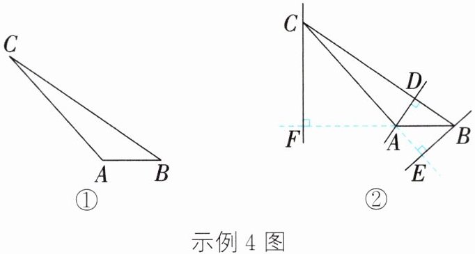 - 示例4:如图①,在三角形 $ABC$ 中,$\angle BAC$ 为钝角。