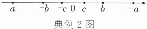 **典例2** 已知三个数$a$,$b$,$c$,其中$a$是负数,$b$,$c$是正数,且$|a|>|b|>|c|$,请用“>”把$a$,$b$,$c$,$-a$,$-b$,$-c$连接起来.