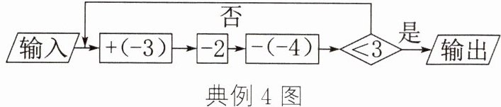 **解**:(1) 把$-2$代入程序:$-2 + (-3) - 2 - (-4) = -3 < 3$.