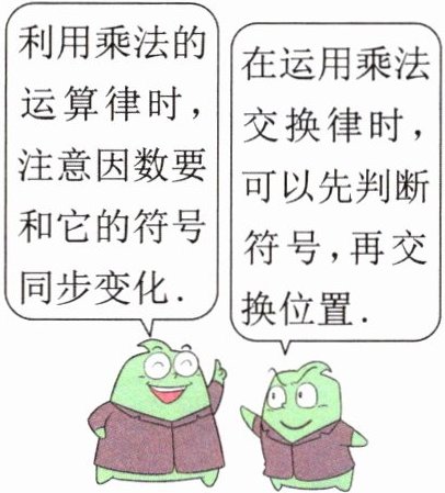 利用乘法的运算律时,注意因数要和它的符号同步变化。