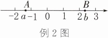 **例3** (1)数轴上点A表示的数是-1,点B到点A的距离为2个单位长度,则点B表示的数是
