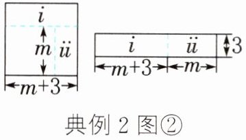 解析:如图②,我们可以动手拼出长方形. 由图②,可以看出相邻的另一边长为 $ 2m + 3 $,所以周长为 $ 2(2m + 3 + 3) = 2(2m + 6) $.