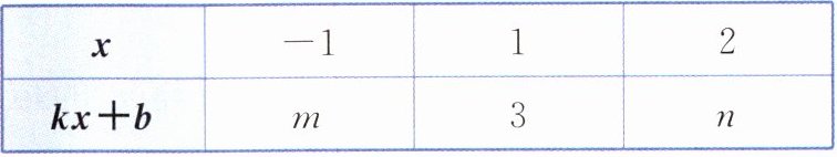 .解析:由表格中第二组数据,可知当$x= 1$时,$kx+b= 3$.所以$k+b= 3$.同理,由表格中的第一、三组数据,可得$-k+b= m$,$2k+b= n$.所以原式$=(-k+b)+2(2k+b)= -k+b+4k+2b= 3k+3b= 3(k+b)= 3×3= 9$.
