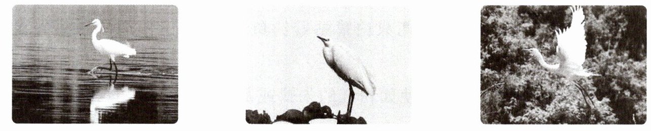 2. 片段描绘了白鹭在不同场景中展现出的美。请结合图片给不同场景起名,再任选一个场景,展开想象,具体描绘白鹭之美。